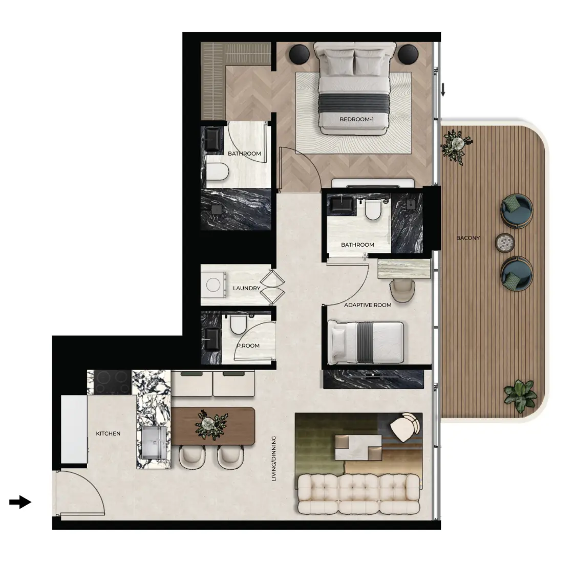Experience double-height grandeur with soaring ceilings and expansive glazing that flood the space with natural light and panoramic city views. Thoughtfully crafted with bespoke finishes and premium materials, the penthouse offers a seamless blend of elegance and comfort, your private sanctuary in the sky, designed for timeless, elevated living. Interiors reflect understated luxury through warm materials, balanced tones, and intuitive layouts. Fully furnished residences are crafted to feel restorative and timeless, where comfort is immediate and elegance reveals itself quietly over time.