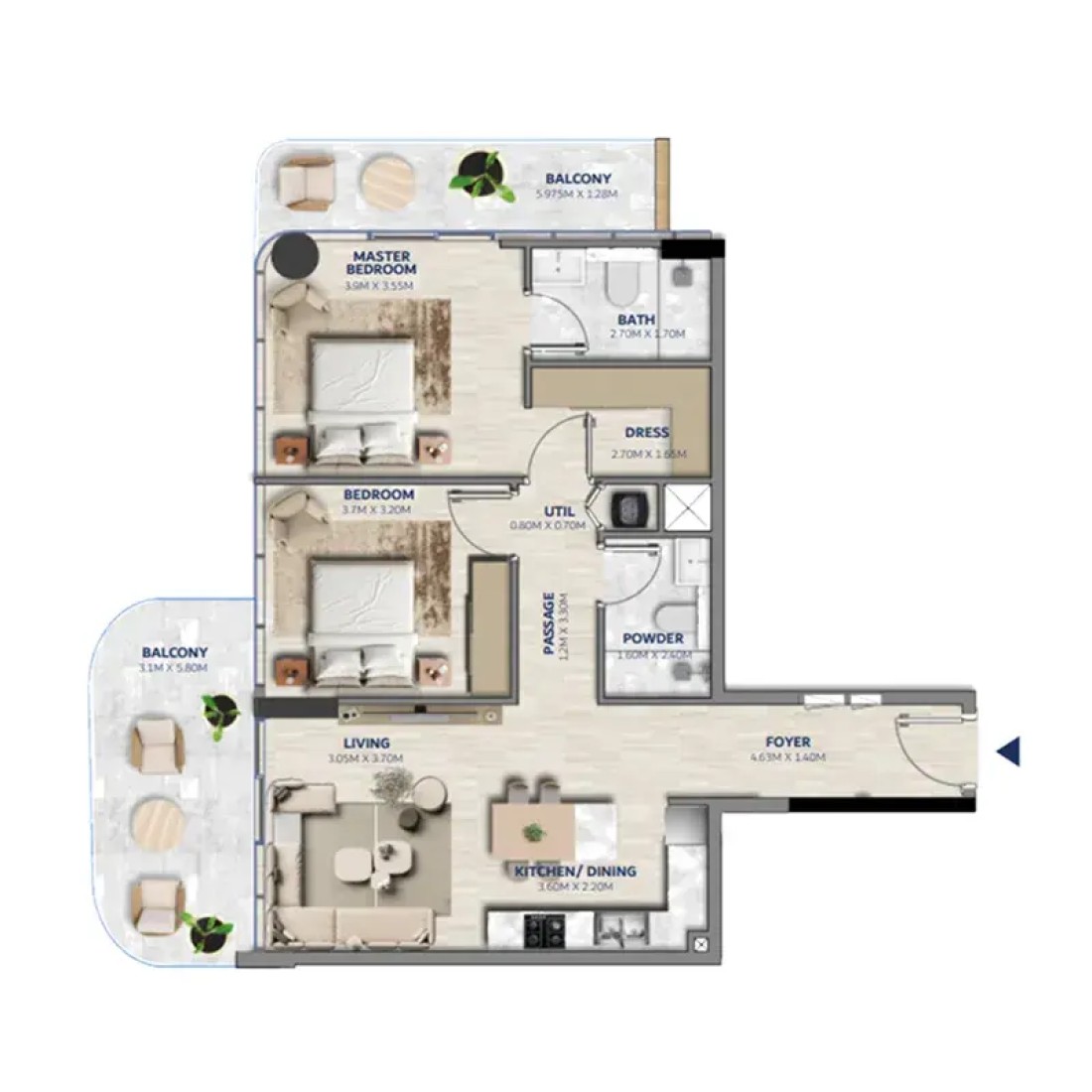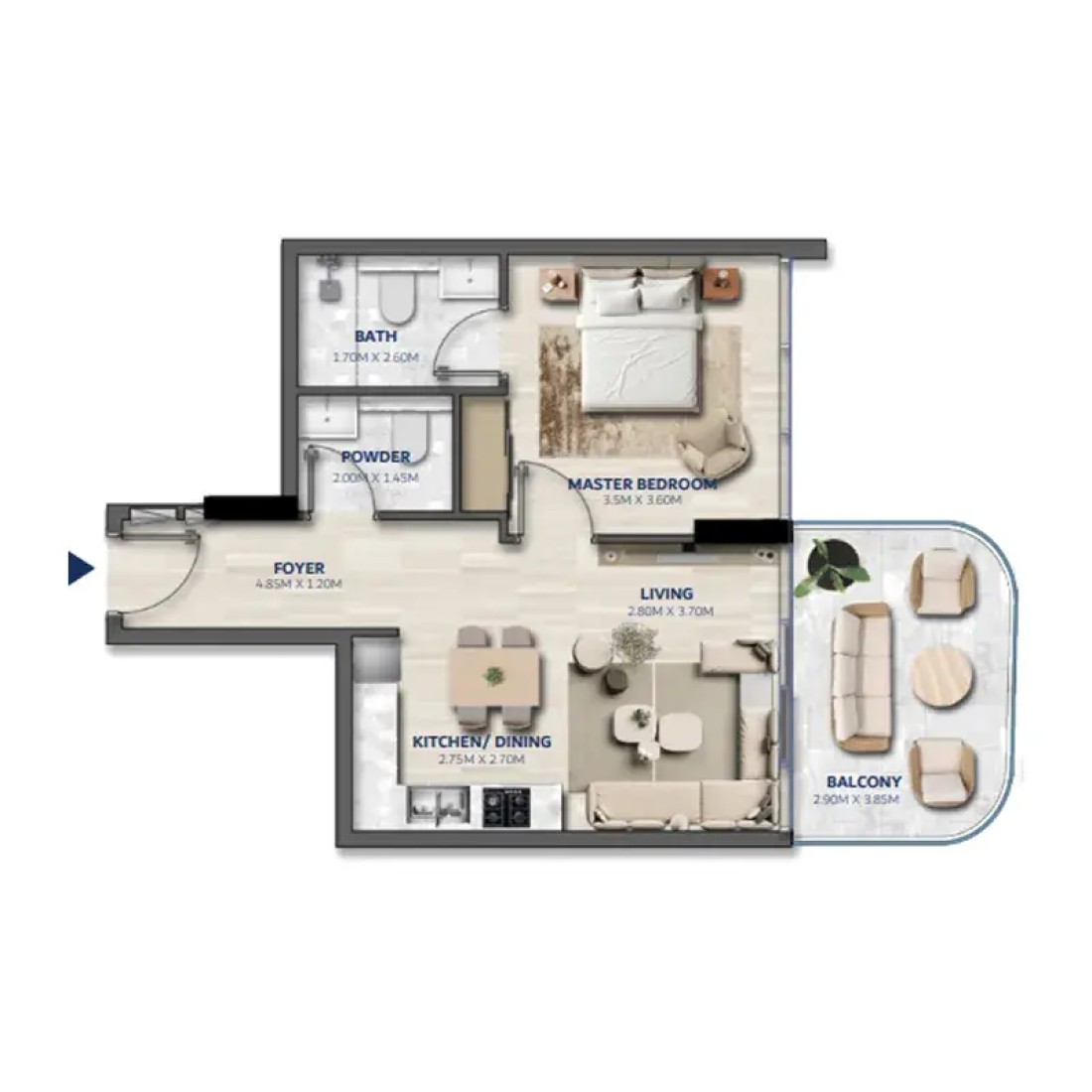 Each of the residences is a carefully crafted space where natural light, elegant textures, and intuitive layouts come together in perfect harmony. The interiors reflect a lifestyle rooted in understated grandeur — with open kitchens, soft-toned bedrooms, study areas, and private terraces that frame the skyline. Signature features like home automation and custom lighting further elevate the daily living experience, while every corner is designed to feel graceful and grounded.
