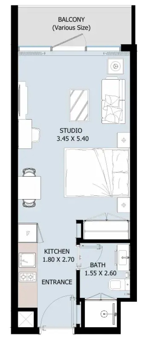 The apartments at Verdana 10 Residences feature high-quality, modern finishes designed for both elegance and functionality. Interiors are crafted with a sophisticated palette of earthy tones and wood accents, creating a warm, inviting atmosphere. The units come with fully tiled bathrooms, fitted wardrobes, kitchen cabinets and countertops, and private balconies. The finishing emphasizes clean lines and contemporary design, enhancing both style and comfort for residents.