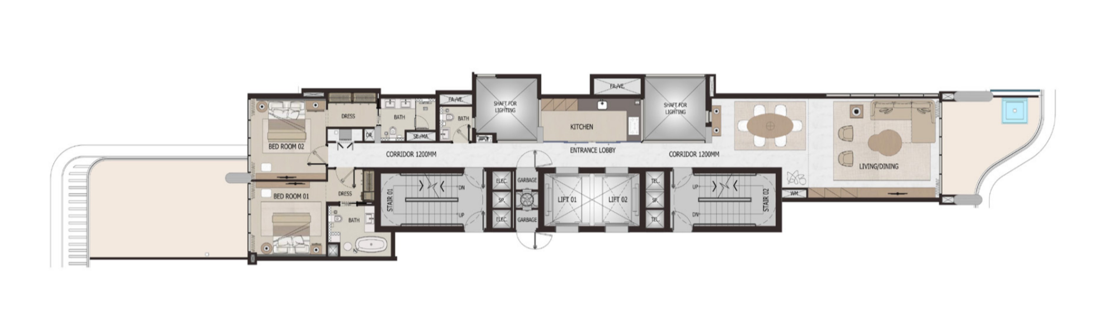 Each of the 45 residences, ranging from two bedrooms to expansive four-bedroom duplexes and penthouses, embodies the essence of contemporary European life and the Italian art of dolce far niente.